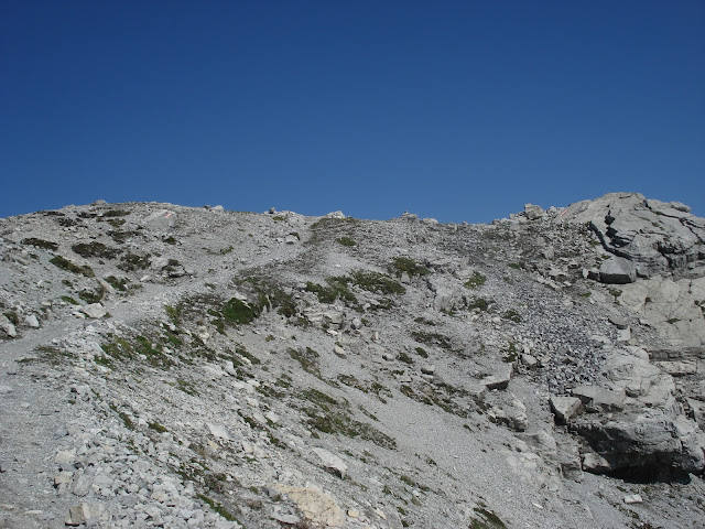 Višje je travnik prešel v mel, ki naju je privedla do sedelca Spielbodentör kjer sva se zazrla v več kot poldrugi kilometer globoko pod nama ležečo Ziljsko dolino. Pot naprej je bila malce zahtevnejša, tako da sva morala sem ter tja popaziti kam in kako bova stopila, a ker do vrha ni bilo daleč, sva zmogla tudi to in kmalu sedla na skalo poleg križa. Nekaj jih je že bilo zgoraj, nekaj jih je prišlo kmalu za nama in kar nekaj sva jih srečala med sestopom. Vseh skupaj pa toliko, da ne bi niti za "g" od gneče zadostovalo. Čeravno okoli križa ni veliko prostora sva zmogla biti sama na samem, zatopljena vsak v svoje misli.