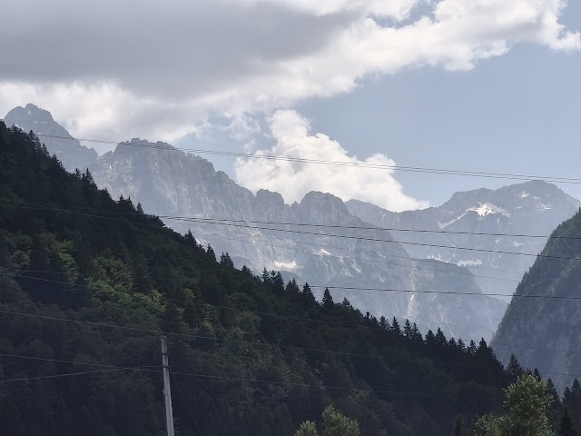 Za Možacem se je cesta pričela vzpenjati, nekje do Dordolle je bil vzpon še zložen, naprej vse manj. Do prelaza Čez Kladje sem moral pošteno pritiskati na pedala, klanec se je ponekod meril z dvomestno številko. Upanje, da bom na klancu v senci, je ugasnilo kaj kmalu, le tu pa tam jo je bilo nekaj malega. Sopihal sem kot lokomotiva, pot je lil v curkih, a se nisem dal. Počasi se daleč pride in ker navkljub klancu nisem bil prav počasen, sem prišel še dlje. No, dlje morda niti ne, do prelaza, kjer je bilo muke navkreber konec, pač. Tam pa hladna senca, kar sem z veseljem izkoristil za krajši počitek. Vmes spomin na potepe na Creto dal Cronz, pa na Creto dai Rusei iz Avpe, kamor me bo vodil skorajšnji spust, tudi na bližnje Lonice in večkrat obiskane gore nad njimi.
